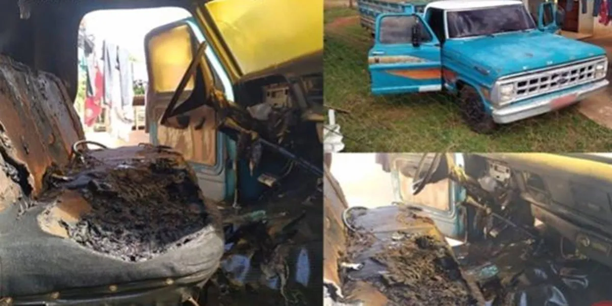 De pronto, a equipe deslocou-se até o local, onde não encontrara ninguém no interior da propriedade e constatado que o veículo Ford/F-350 com placas de Cafezal do Sul estava com seu interior em chamas.