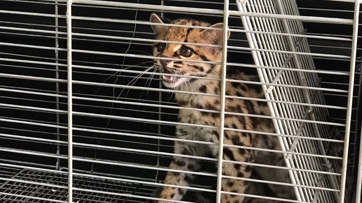 O animal foi capturado com uso de material próprio para apanha e levado até o Centro de Apoio a Fauna Silvestre -CAFS onde recebeu atendimento veterinário. A equipe de veterinários realizou o atendimento do felino e o identificou como um macho ainda juvenil de Gato do Maracajá, Leoparddus wiedii, espécie nativa de ocorrência na região.