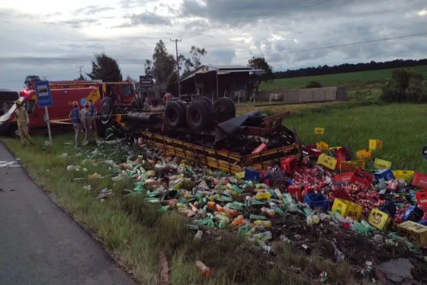 Caminhoneiro morre após tombamento de caminhão carregado de bebidas em São Mateus do Sul