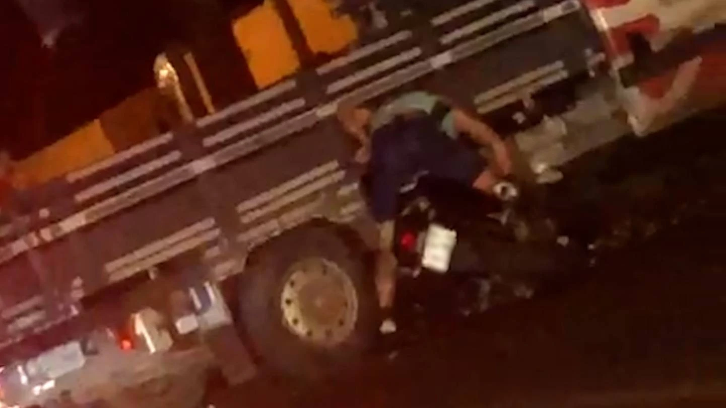 Motociclista fica preso em veículo após forte colisão na Vila Pioneiro, em Toledo