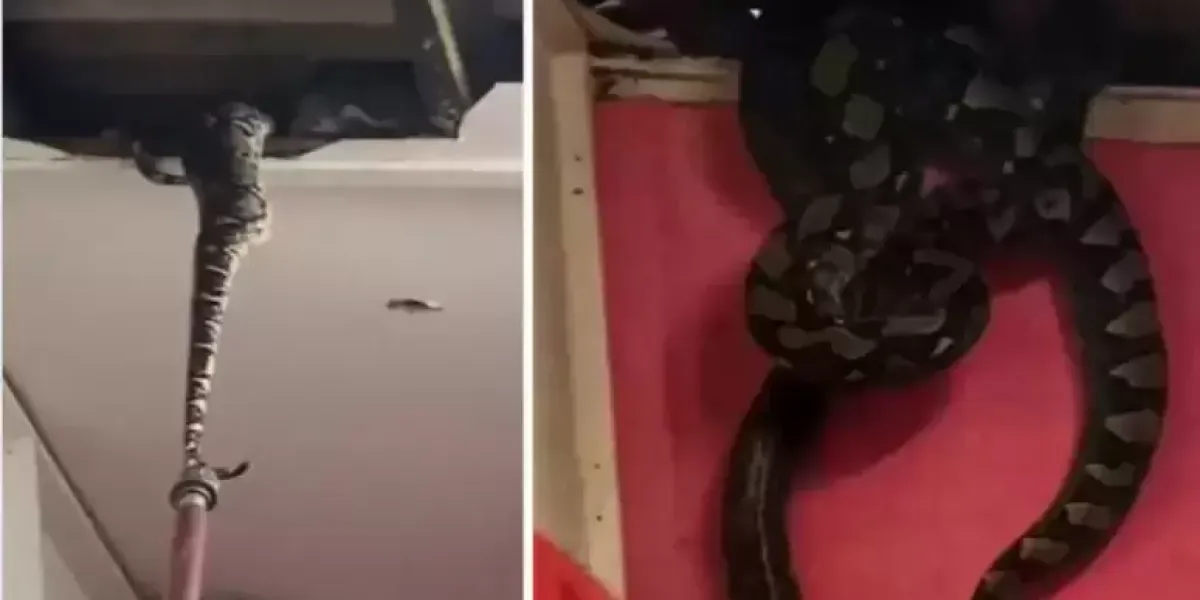 Os moradores estavam em casa quando escutaram um barulho no teto. Quando entraram no quarto, viram a cauda de uma píton saindo de uma parte do teto que estava quebrada. A equipe de resgate levou 50 minutos para resgatar as duas serpentes gigantes.