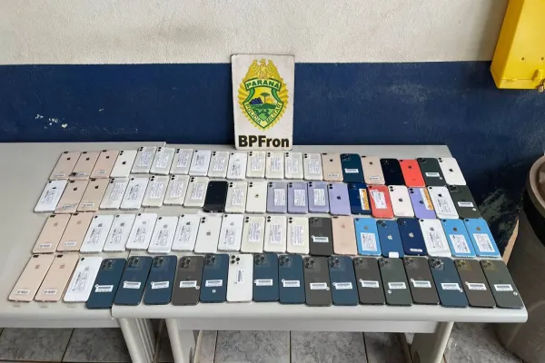 BPFRON apreende 83 aparelhos celulares de luxo em ônibus na cidade de Cascavel