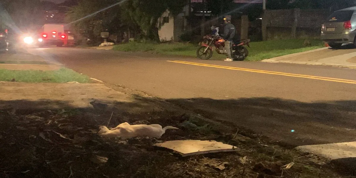 Motociclista fica ferido após atropelar cachorro no Bairro Periolo, em Cascavel