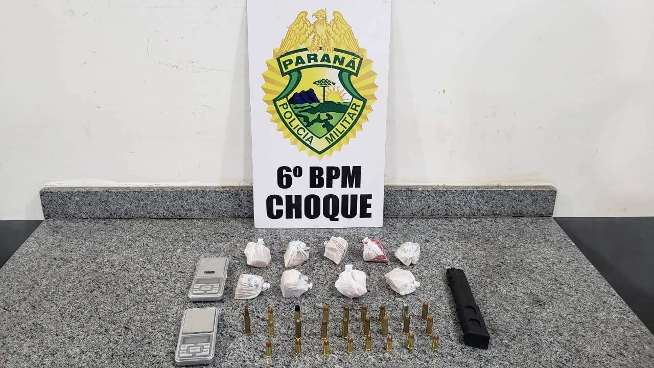 Na manhã desta segunda-feira (20), a equipe Choque da Polícia Militar recebeu uma denúncia anônima de que um homem estaria guardando drogas ilícitas e uma arma de fogo em sua residência na Rua Yara Amaral, no bairro Interlagos, em Cascavel.