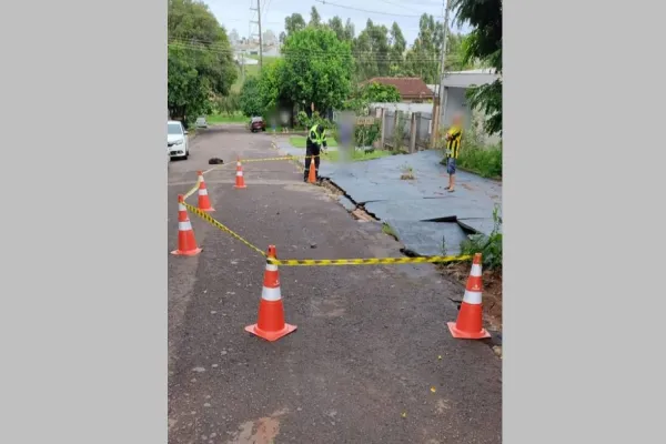 Buraco se abre na Rua Paraná, no bairro Coqueiral e é isolado pelo Transitar