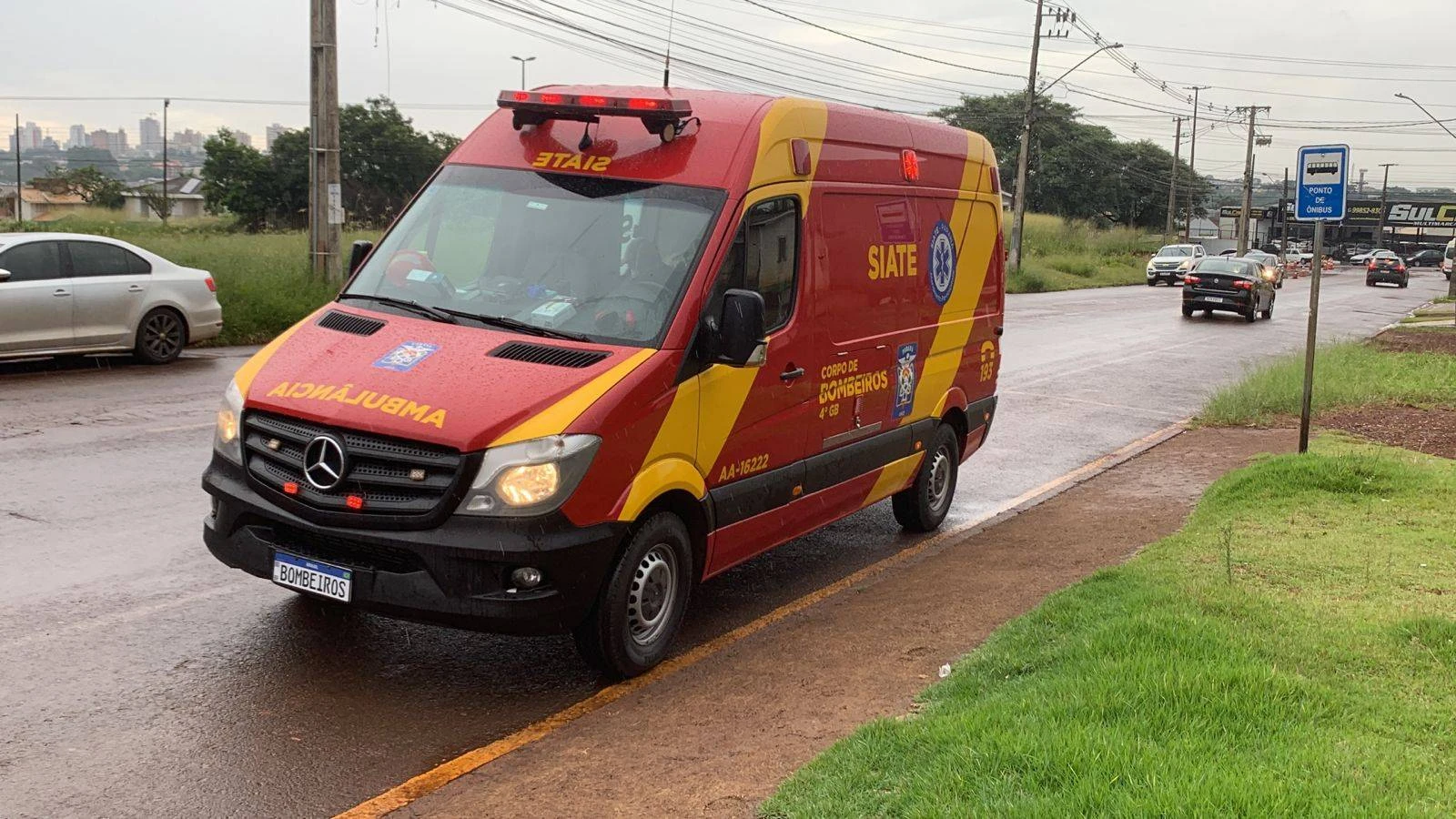 Na tarde desta segunda-feira (27), socorristas do Siate foram acionados para atender uma vítima de acidente de trânsito na Avenida Estados Unidos, esquina com Avenida Rocha Pombo, no Bairro Pacaembu, em Cascavel.