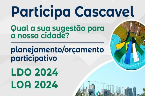 O Município de Cascavel deu o primeiro passo para ouvir as demandas da população, debater e incluir aquelas que forem prioritárias no orçamento do próximo ano. A partir desta quarta-feira (1º), a população poderá opinar sobre políticas públicas de forma online e, assim, direcionar os recursos financeiros da Lei Orçamentária Anual de 2024.