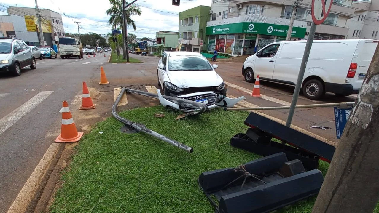 Segundo informações da equipe policial, o veículo Hyundai/Elantra transitava pela Avenida Brasil sentido Bairro Centro, quando no cruzamento com a rua Francisco Bartinik, se envolveu em um abalroamento transversal com a motocicleta Sundown/Hunter 125, que transitava pela segunda via citada sentido bairro Parque Verde. O veículo Elantra ainda chocou-se contra um semáforo.