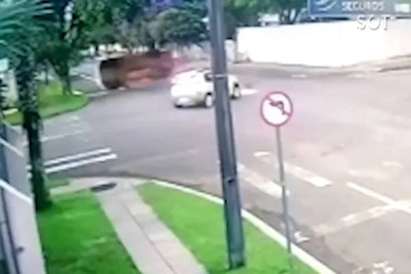 Com o impacto da batida, a caminhonete acabou capotando e parando em cima da calçada. Felizmente, não houve feridos, sendo registrados apenas danos materiais.