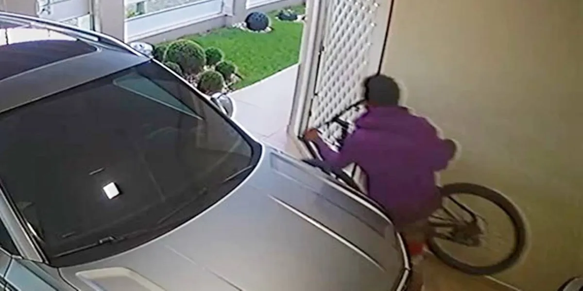 O crime foi registrado por uma câmera de segurança, que mostra o ladrão forçando o portão e conseguindo acesso ao interior da casa. Em seguida, ele pega a bicicleta e sai pedalando pela rua.