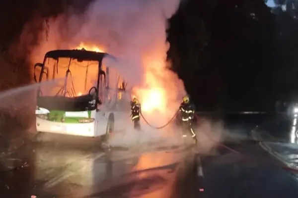 Trabalhadores saem às pressas de ônibus em chamas na SC-445