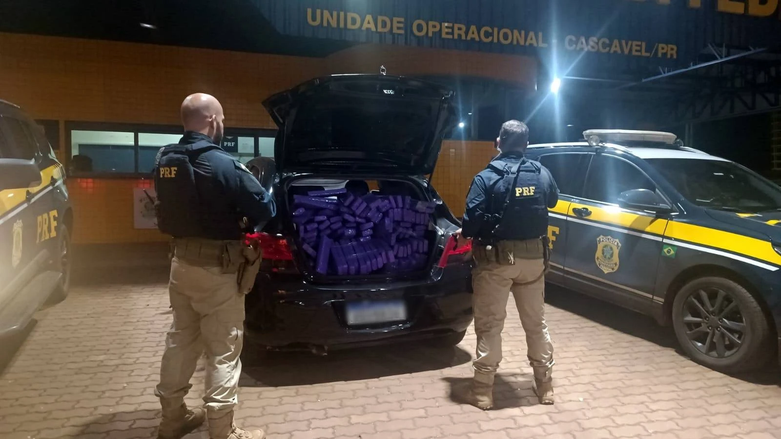 No quilômetro 580 da BR-277, em Cascavel, uma equipe da PRF (Polícia Rodoviária Federal) apreendeu um veículo Ônix carregado com maconha na madrugada deste domingo (12).
