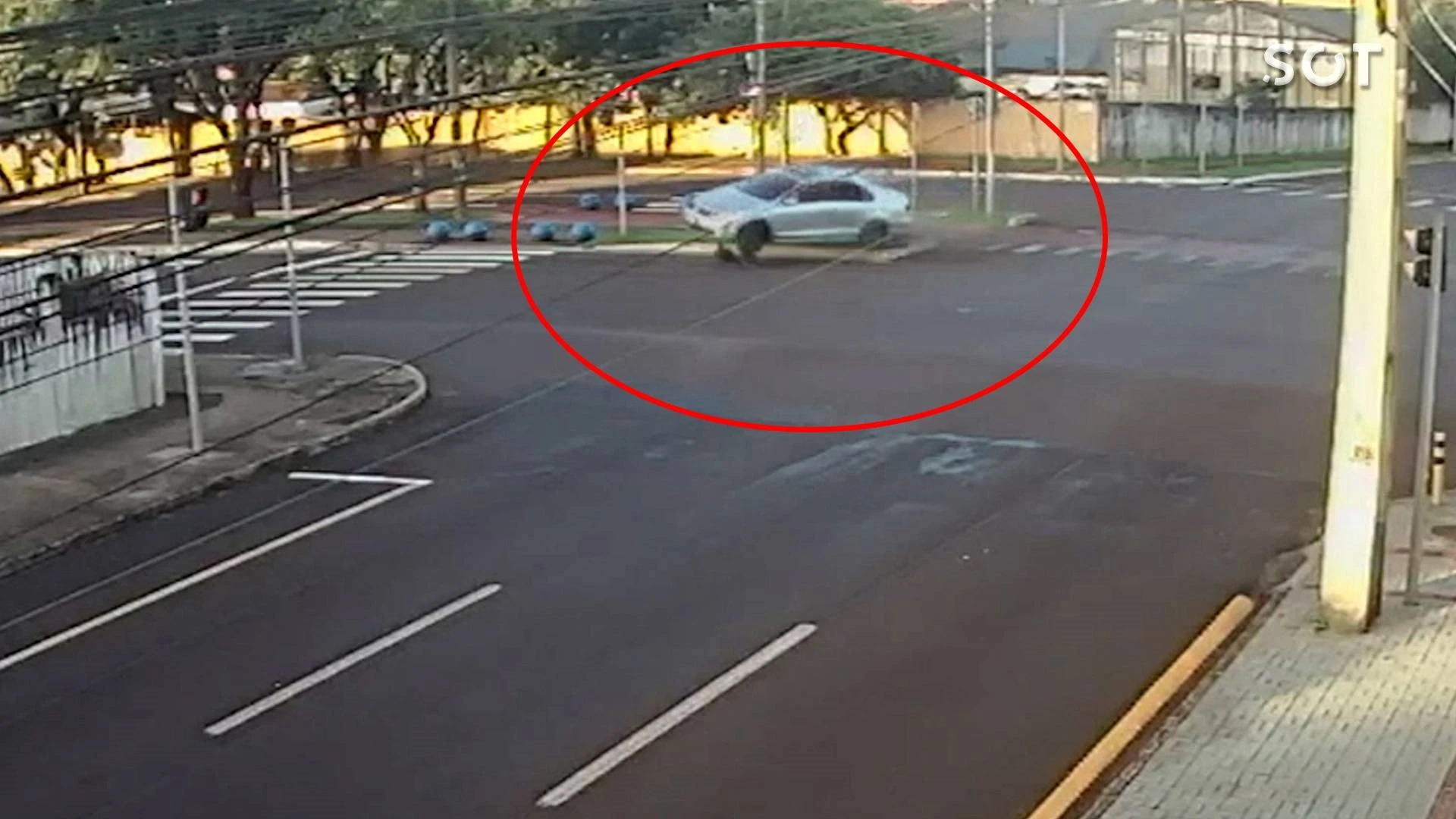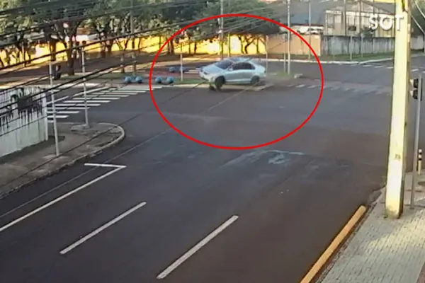 Imagens de uma câmera de segurança registraram um acidente de trânsito no cruzamento da rua Minas Gerais com a Avenida Barão do Rio Branco, no bairro São Cristóvão, no último domingo (19).