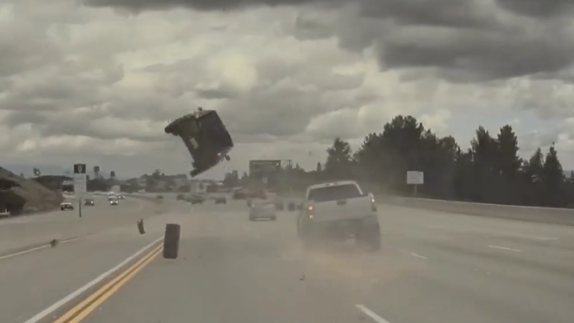 As imagens foram capturadas pela câmera frontal do carro enquanto o condutor dirigia na rodovia. Um Kia Soul aparece ultrapassando primeiro o Tesla na via expressa e se aproximando de uma picape. Em questão de segundos, o carro é atingido por uma roda que se soltou da caminhonete.