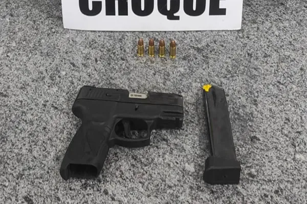 Segundo informações recebidas via rádio, o condutor do veículo estaria portando uma arma de fogo, o que motivou a equipe do Pelotão de Choque a realizar a abordagem. Durante a revista, foi encontrada uma pistola modelo g2c, além de um carregador e quatro munições.