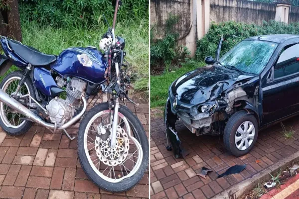 Na manha desta sexta-feira (07/04), a equipe Plantão de Acidentes atendeu a uma ocorrência de colisão frontal na Avenida Piquiri, no bairro Brasmadeira, em Cascavel. O acidente envolveu um veículo Renault/Clio e uma motocicleta Honda/CG 125, que transitavam em sentidos opostos pela via.