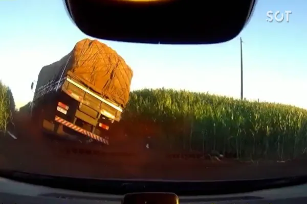 No vídeo é possível perceber que o caminhão quase tomba nesse momento. Ao perceber que não conseguiria fugir, o condutor arremessou o veículo em meio a uma plantação de milho e fugiu a pé. Buscas foram realizadas mas devido as condições do local o condutor não foi localizado.