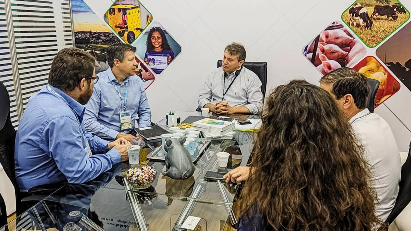 Em encontro realizado nesta quarta-feira (12), no estande da Prefeitura de Toledo no Centro de Eventos Ismael Sperafico, a Cooperativa Primato, a administração municipal e representantes da Empresa Brasileira de Pesquisa Agropecuária (Embrapa) discutiram ações para o fortalecimento de pesquisas voltadas ao aumento da produção agropecuária. A ação ocorreu dentro do Inovameat 2023, evento que busca avanços para as diversas cadeias produtivas da proteína animal. A conversa foi proposta pelo prefeito Beto Lunitti.