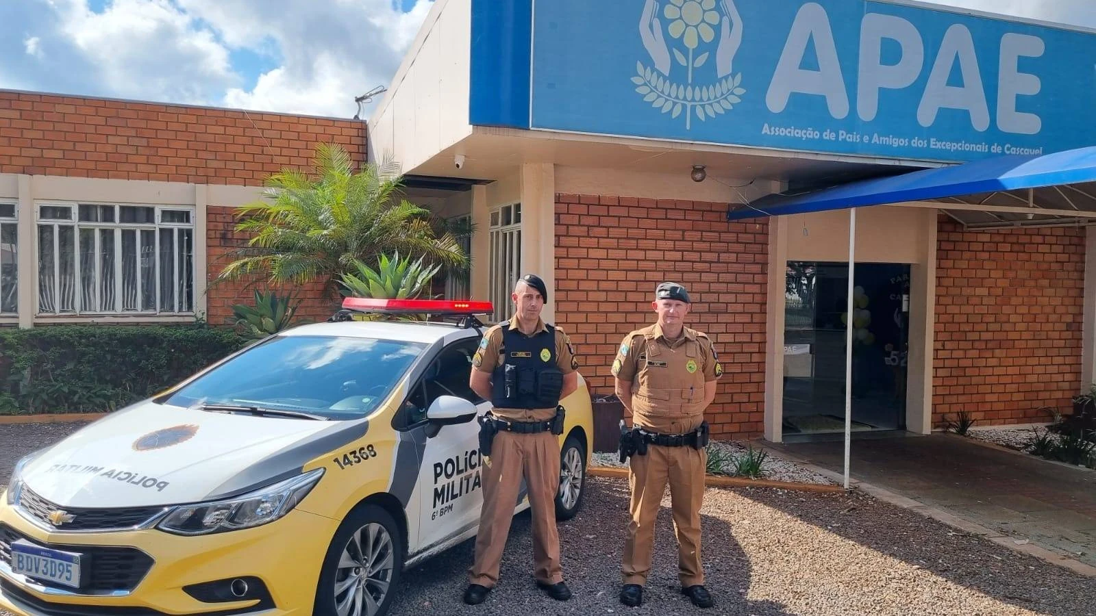 A Polícia Militar do Paraná tem reforçado a segurança em locais importantes e nesta sexta-feira (14), a Apae (Associação de Pais e Amigos dos Excepcionais) de Cascavel recebeu a visita de policiais do 6º Batalhão. A ação foi realizada por intermédio do 3º Sargento, Alan e do Cabo Krinsk, que foram recebidos pela gerente geral da instituição, Ellen. O objetivo da visita foi proporcionar maior segurança aos funcionários e pacientes da instituição, dedicada ao acolhimento e cuidados das pessoas com deficiência de Cascavel.