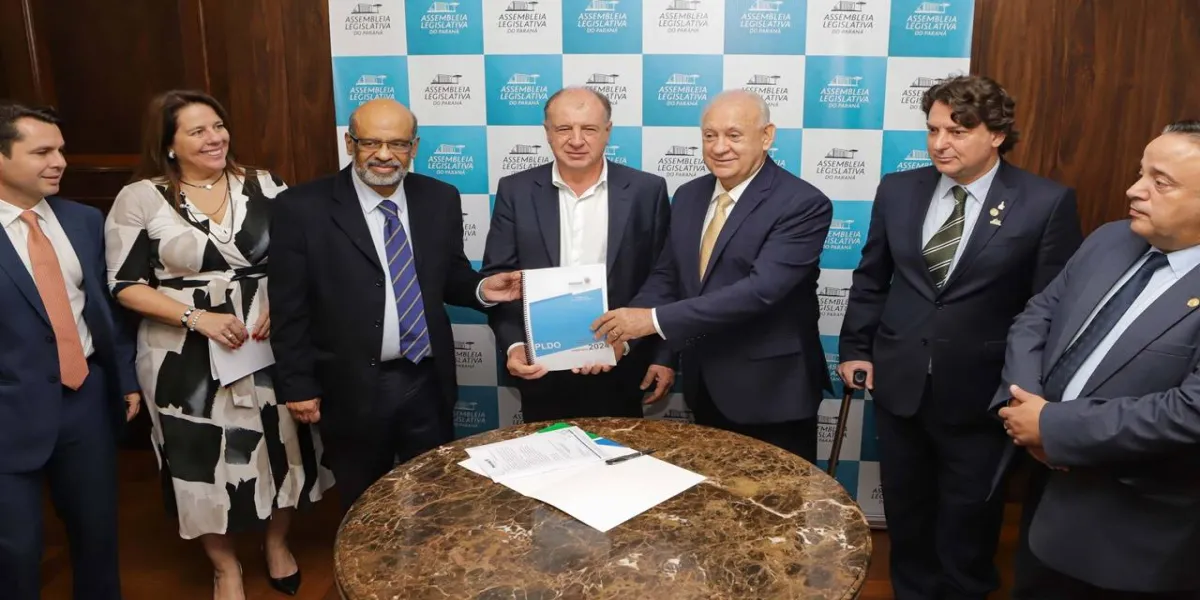 O Governo do Estado entregou nesta segunda-feira (17) à Assembleia Legislativa do Paraná (Alep) o Projeto de Lei de Diretrizes Orçamentárias (PLDO) para 2024. Em um ato simbólico, o documento que define as metas e prioridades do Governo para o próximo exercício foi entregue pelo secretário Estadual da Fazenda, Renê Garcia Junior, e pelo secretário-chefe da Casa Civil, João Carlos Ortega, ao presidente da Casa, Ademar Traiano.