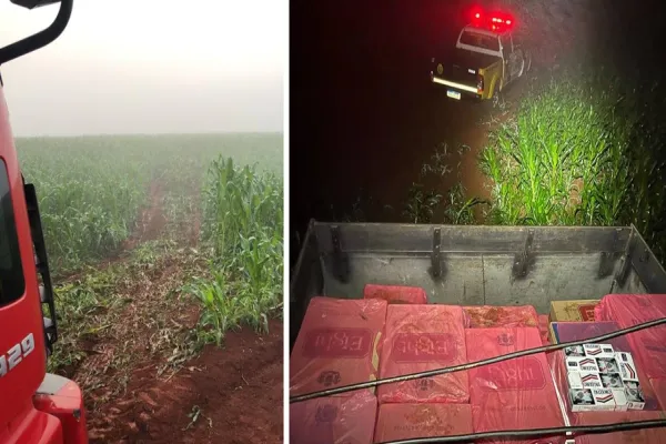 Após a fuga dos suspeitos, a equipe de fiscalização constatou que o caminhão estava carregado com cigarros contrabandeados do Paraguai. Foi necessário solicitar apoio de produtores rurais para retirar o veículo da plantação e encaminhá-lo à sede da 3ª Cia para contagem dos cigarros e lavratura do BOU.