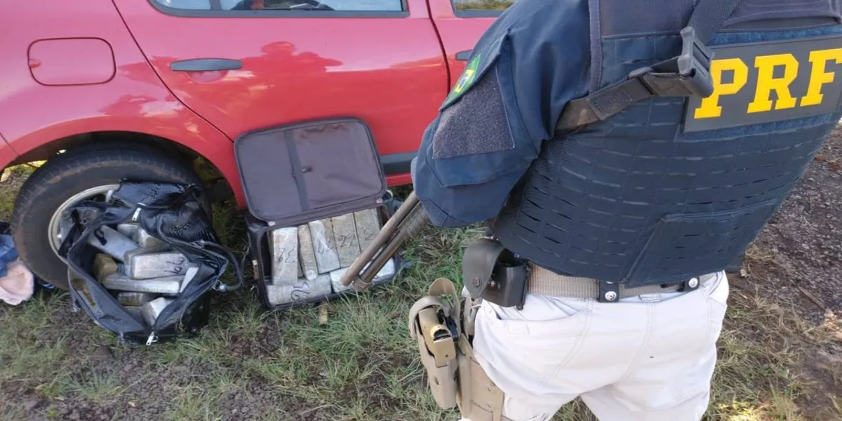 Durante a fuga, o passageiro do veículo arremessou duas bolsas pela janela. No interior das bolsas havia vários tabletes de maconha, que totalizaram 22,760 kg.