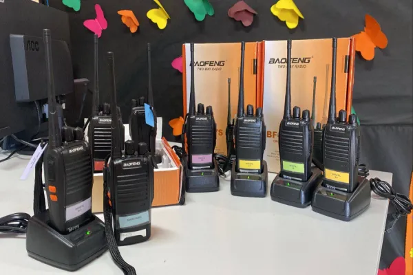 Com o auxílio da comunidade escolar, mais dois pais realizaram também a doação dos rádios, somando oito aparelhos. Um aparelho foi disponibilizado em cada sala de aula e um na coordenação. Com essa iniciativa, os professores poderão ser contatados em caso de emergência e solicitar auxílio para quando os pais vierem buscar seus filhos antes do horário estipulado para adentrar ao espaço interno.