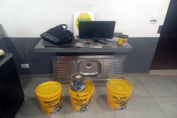 Após diligências, os policiais conseguiram abordar um indivíduo na Rua Janio Quadros com Cristóvão Colombo, portando diversos produtos que haviam sido furtados de uma obra próxima, incluindo massas, uma pia e um monitor.