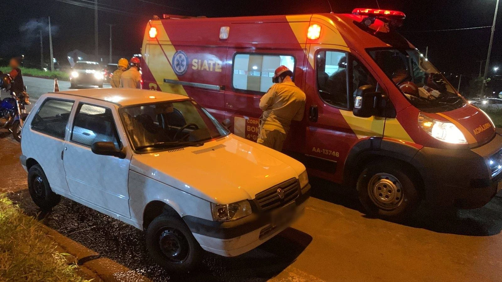 Na noite desta quinta-feira (11), uma colisão entre um Fiat Uno e uma motocicleta Honda CG deixou um homem ferido em Cascavel. Socorristas do Siate foram acionados para prestar atendimento no local do acidente, registrado na rodovia PR-486 esquina com Rua Gandhi, no Bairro Brasmadeira, conhecido como Trevo do Ceasa.