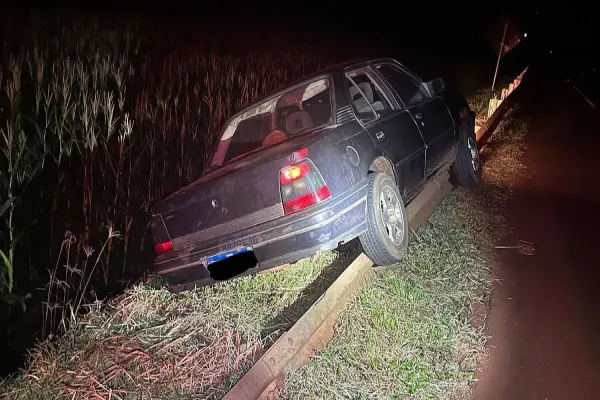 O motorista tentou jogar o veículo em uma plantação de milho, mas acabou colidindo com a defensa existente no local. Mesmo após o acidente, o indivíduo conseguiu fugir adentrando o milharal. Apesar das buscas realizadas, não foi possível localizá-lo.