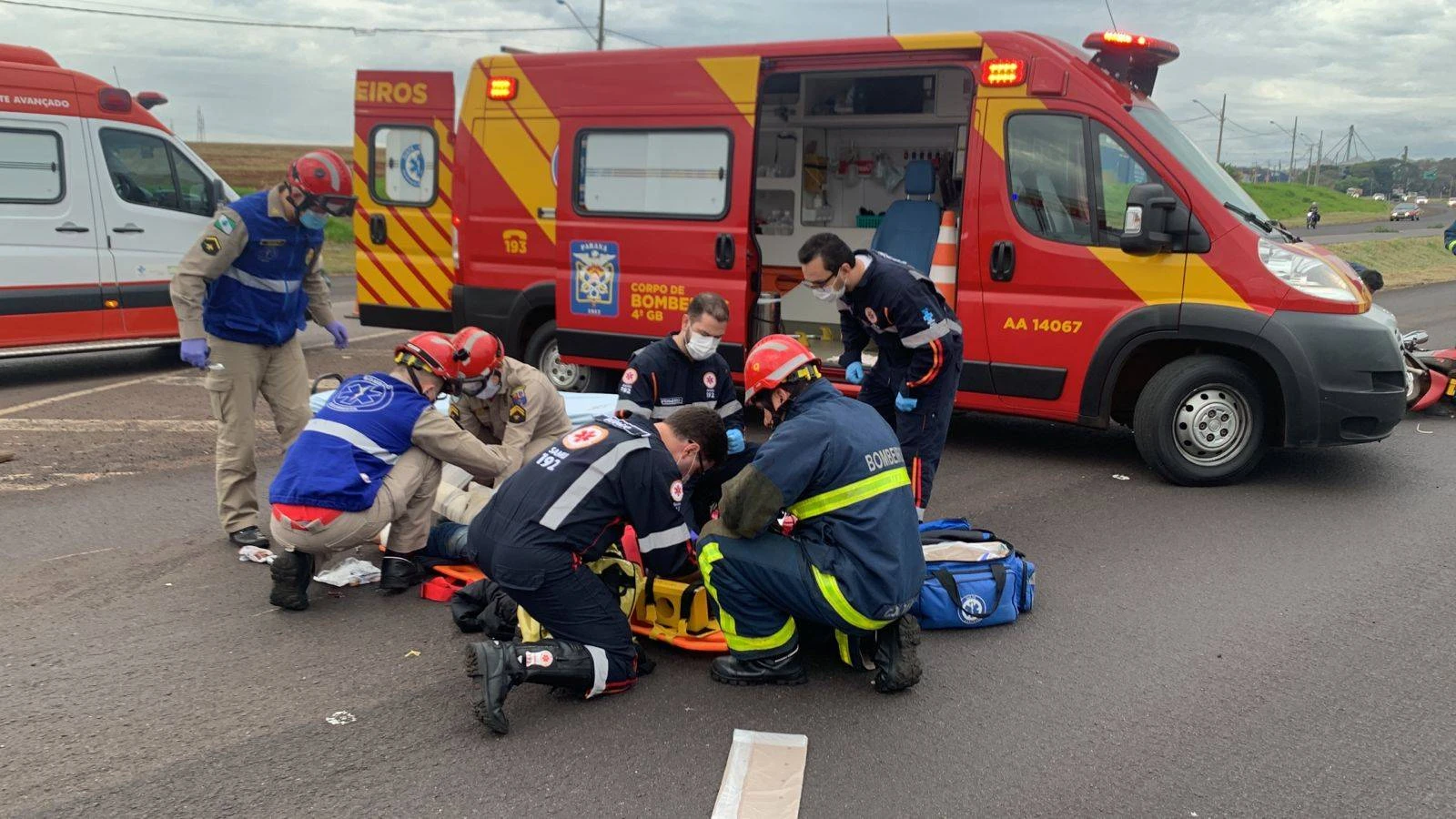 Motociclista fica em estado grave após forte colisão na BR-467 em Cascavel