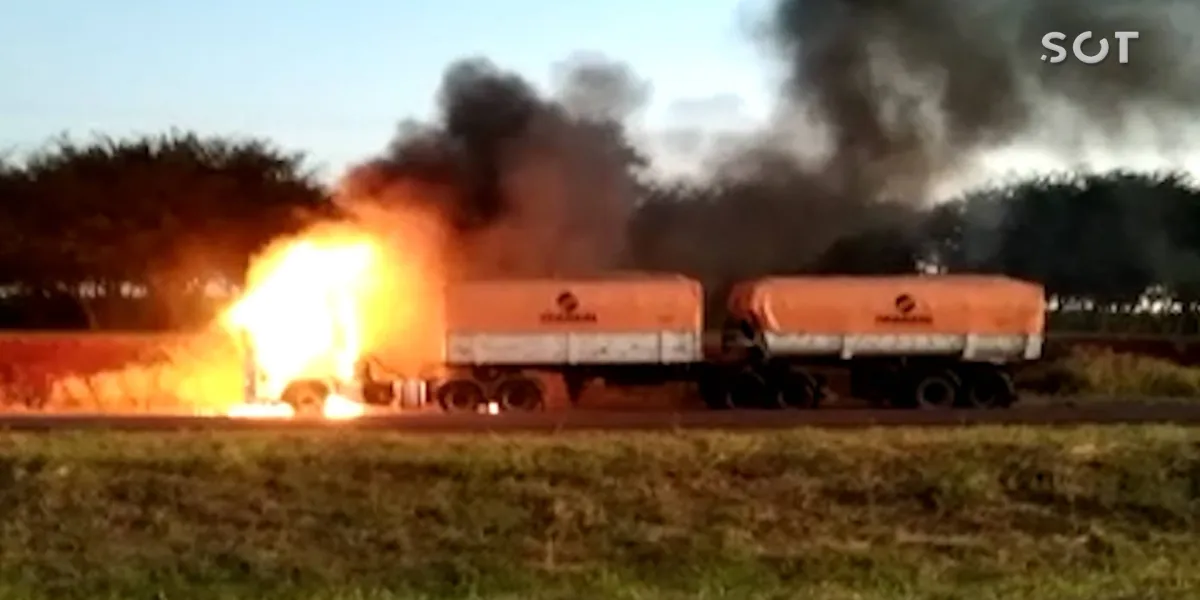 Na tarde desta quinta-feira (25), um grande incêndio atingiu um veículo de transporte na BR-467, próximo a Dois Irmãos, distrito de Toledo. O incidente ocorreu enquanto o motorista havia parado o caminhão e se dirigido a um posto para tomar banho. Ao retornar, ele se deparou com as chamas consumindo o veículo.
