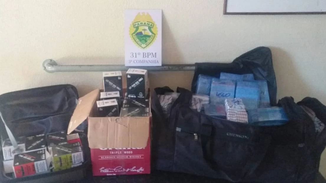 Polícia Militar apreende produtos de descaminho em abordagem a ônibus em Corbélia