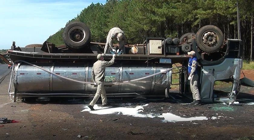 A PRE esteve no local controlando tráfego de veículos durante o acidente. Um guincho seria acionado para remover os veículos envolvidos na ocorrência. A capacidade de carga do caminhão é de 10 mil litros, mas não foi possivel precisar de no momento do acidente o tanque estava cheio.