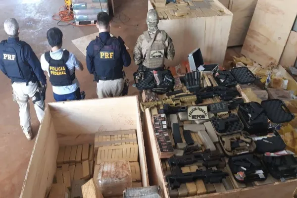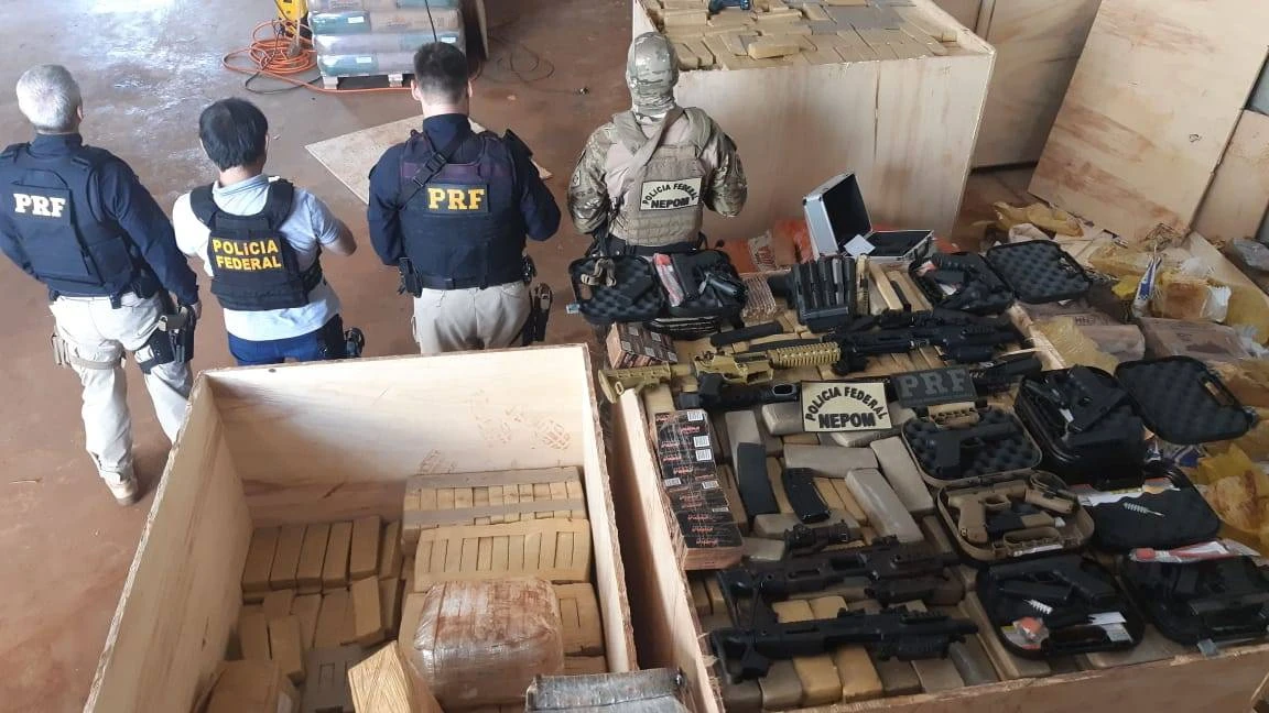 PF e PRF estouram depósito com toneladas de maconha, fuzis e pistolas no Paraná