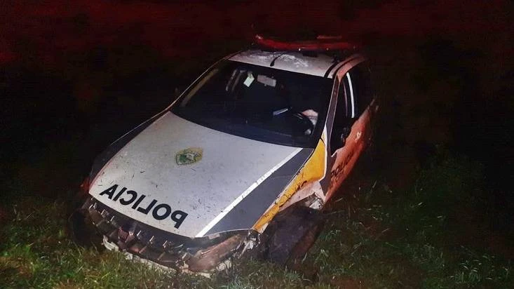 Colisão envolvendo viatura da Polícia Militar é registrada na PR-449, em Mangueirinha