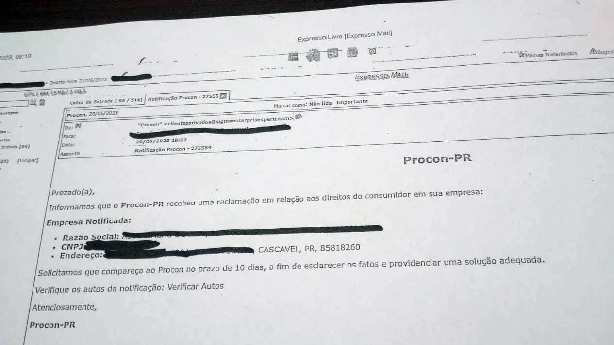O Procon de Cascavel informa que somente nesta segunda-feira (06/11), recebeu seis relatos de pessoas que receberam os e-mails fraudulentos. Os golpistas têm direcionado esses e-mails tanto a pessoas físicas quanto a pessoas jurídicas.