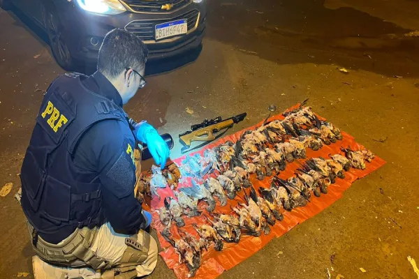 Durante uma abordagem de alcoolemia realizado na BR-163, na altura do KM 73, em Planalto-PR, a Polícia Rodoviária Federal fez uma apreensão de 66 aves silvestres mortas. Além disso, a equipe policial também encontrou uma espingarda de pressão calibre 5,5 e um cilindro usado para recarga do equipamento.
