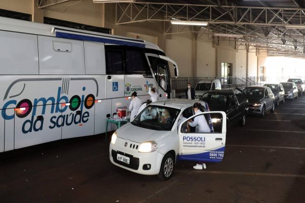 A Blitz da Vacina, que ocorreu no Centro de Convenções e Eventos, também contou com o apoio do Comboio da Saúde. A unidade móvel tem toda a estrutura adequada para o armazenamento das doses de influenza e também serviu de espaço para a vacinação das pessoas que chegaram a pé no local.
