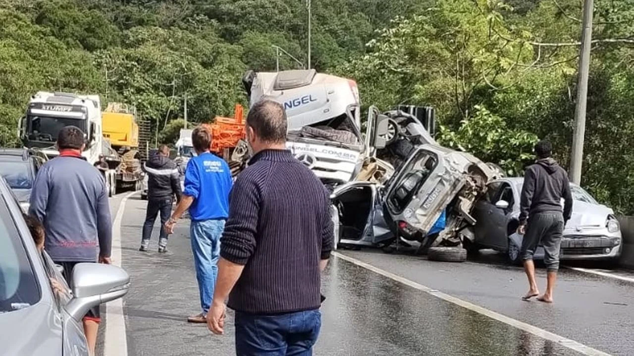 Um grave acidente ocorrido neste domingo (2) resultou na interdição da pista sentido Santa Catarina da BR-376, no km 666, em Guaratuba, Litoral do Paraná. De acordo com informações preliminares, uma carreta perdeu os freios durante a descida da serra e colidiu com diversos veículos, causando um engavetamento.