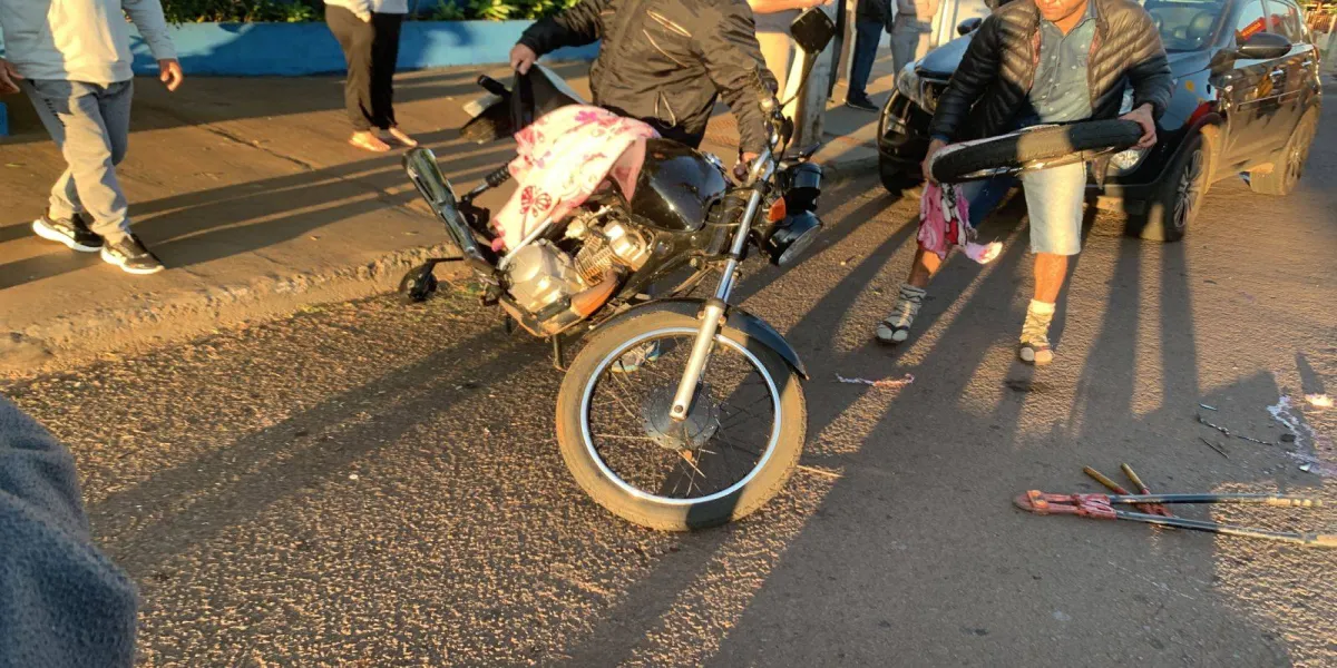 Criança fica gravemente ferida após cobertor enroscar em rodado de motocicleta na Rua Europa