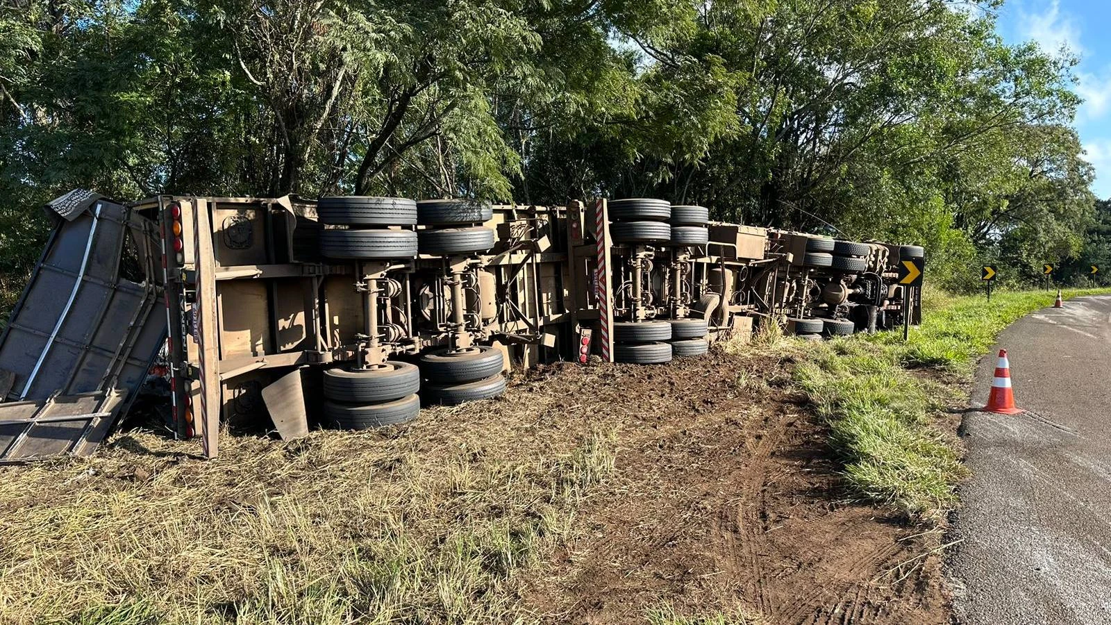 O tombamento do caminhão ocasionou a interdição parcial da BR-277, exigindo a presença da Polícia Rodoviária Federal para controlar o tráfego e garantir a segurança dos demais motoristas.