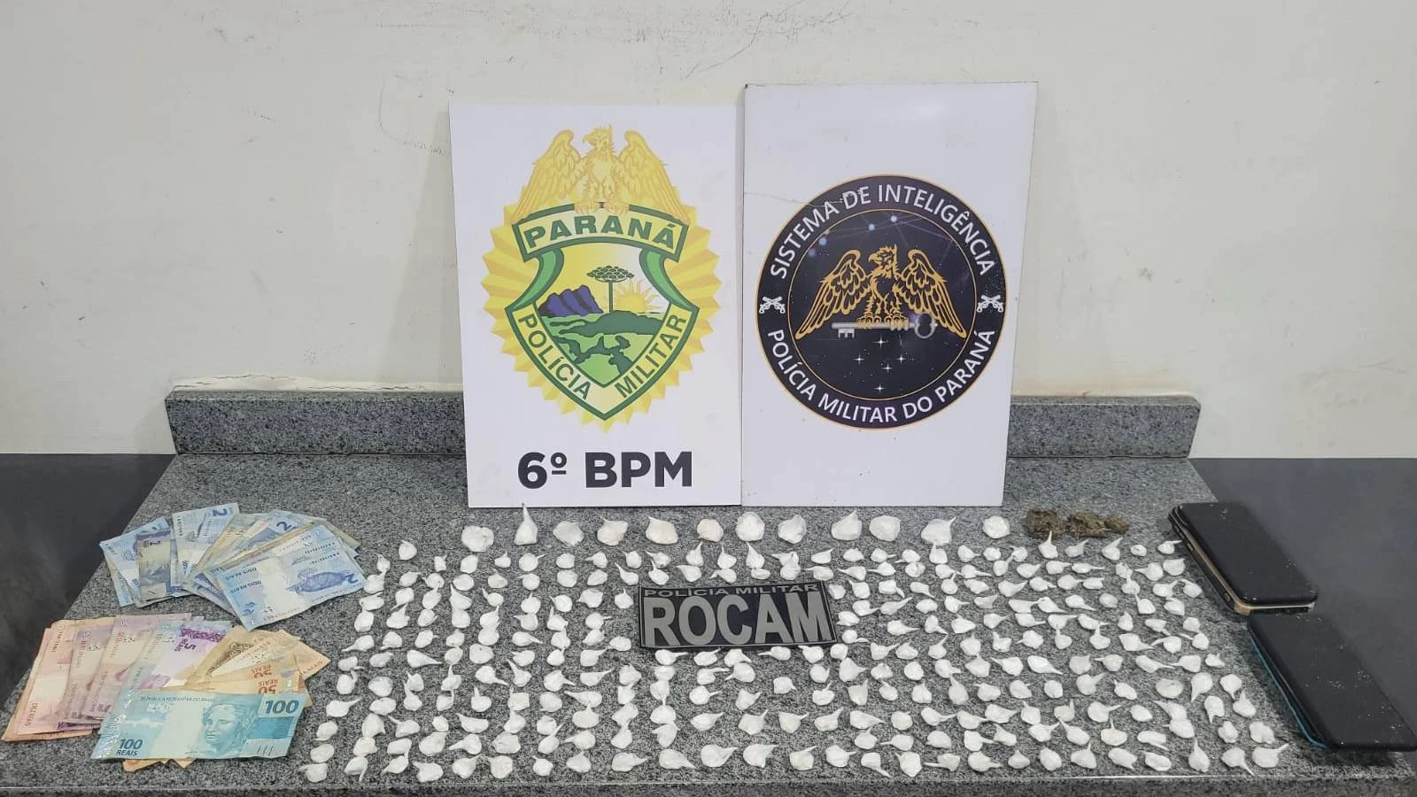 Durante a operação, foram apreendidas 268 buchas de cocaína, totalizando 300g da droga, além de 14g de maconha e uma quantia em espécie de R$521,00. As substâncias entorpecentes estavam prontas para comercialização, configurando o crime de tráfico.