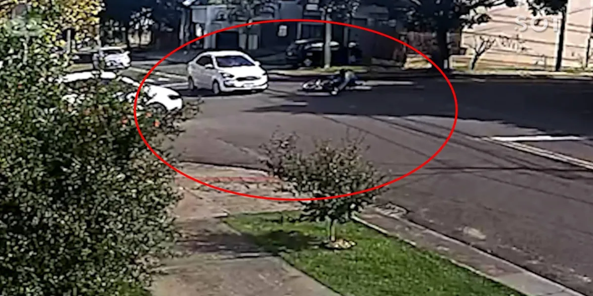 Motociclista fica ferido em colisão no Bairro Coqueiral; Câmera de segurança flagrou a batida
