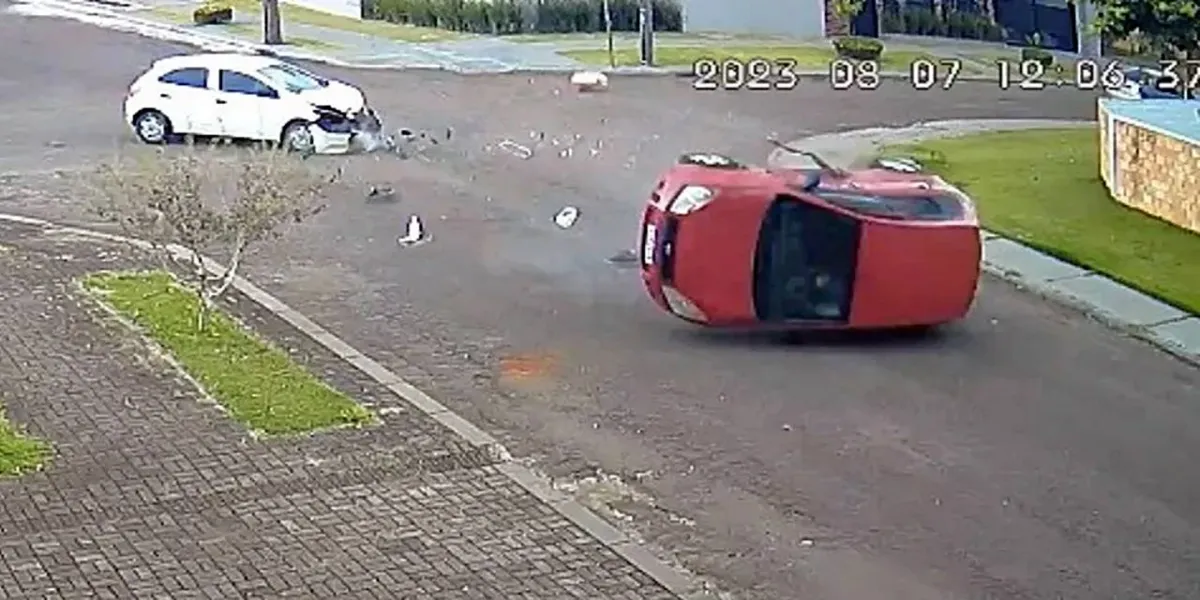 O impacto do acidente foi registrado pelas câmeras e mostra claramente o momento em que um veículo Onix avança a via preferencial e colide com um Fiesta, ocasionando um capotamento violento. As imagens impressionantes mostram como o Fiesta capota várias vezes antes de finalmente parar, a quase 50 metros de distância do ponto de impacto inicial.