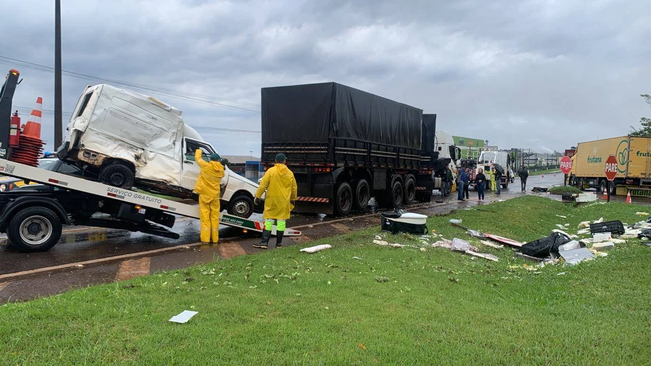 Na manhã desta quarta-feira (09/08), um grave acidente envolvendo um caminhão e uma Fiorino foi registrado nas rodovias de Cascavel, causando forte impacto e deixando um motorista ferido. A colisão ocorreu na rodovia BR-277, mais precisamente no Trevo de acesso a São João, distrito de Cascavel.