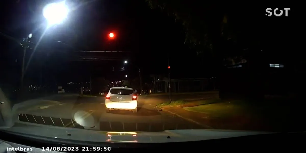 Imagens capturadas por uma câmera de corporal e automotiva registraram a intensa perseguição da Polícia Militar a um veículo roubado na noite de segunda-feira (14) na BR-369, na região norte de Cascavel.