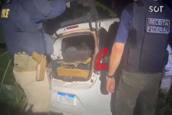 Durante as ações de combate ao contrabando e descaminho, as equipes da PRF e da Receita Federal identificaram um veículo em atitude suspeita. Ao tentar abordar o automóvel, o condutor empreendeu fuga, acessando uma área rural. Em meio à perseguição, o motorista abandonou o veículo e se embrenhou no mato, conseguindo escapar das equipes.