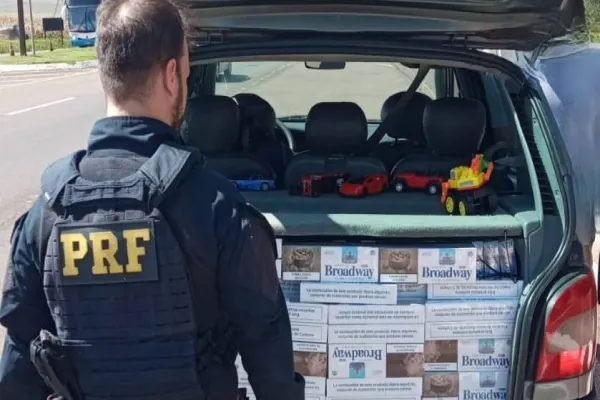 Durante a vistoria, os policiais verificaram que estavam no veículo, pai, mãe e uma criança de quatro anos de idade. Mas o que mais chamou a atenção dos policiais foi a presença de cerca de quatro mil maços de cigarros que eram transportados com uma criança a bordo, filho do casal.