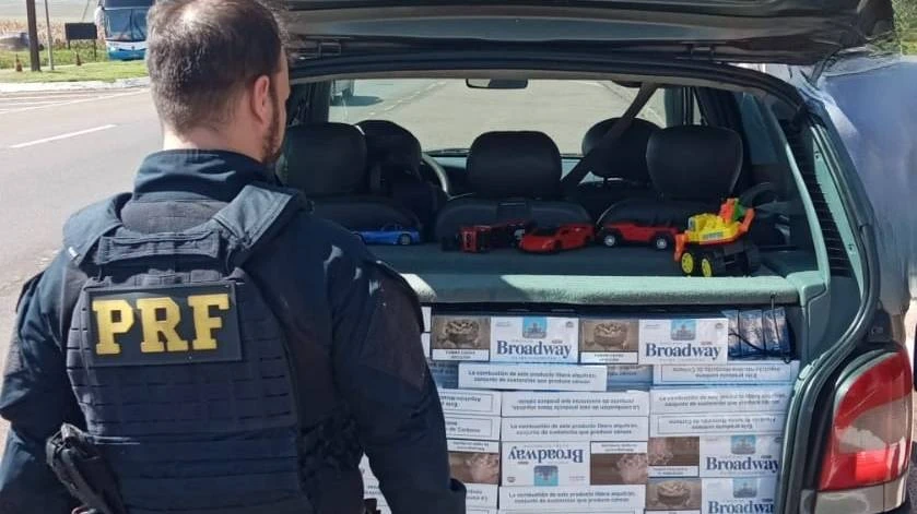 PRF flagra criança sendo transportada em carro recheado de cigarros no Paraná